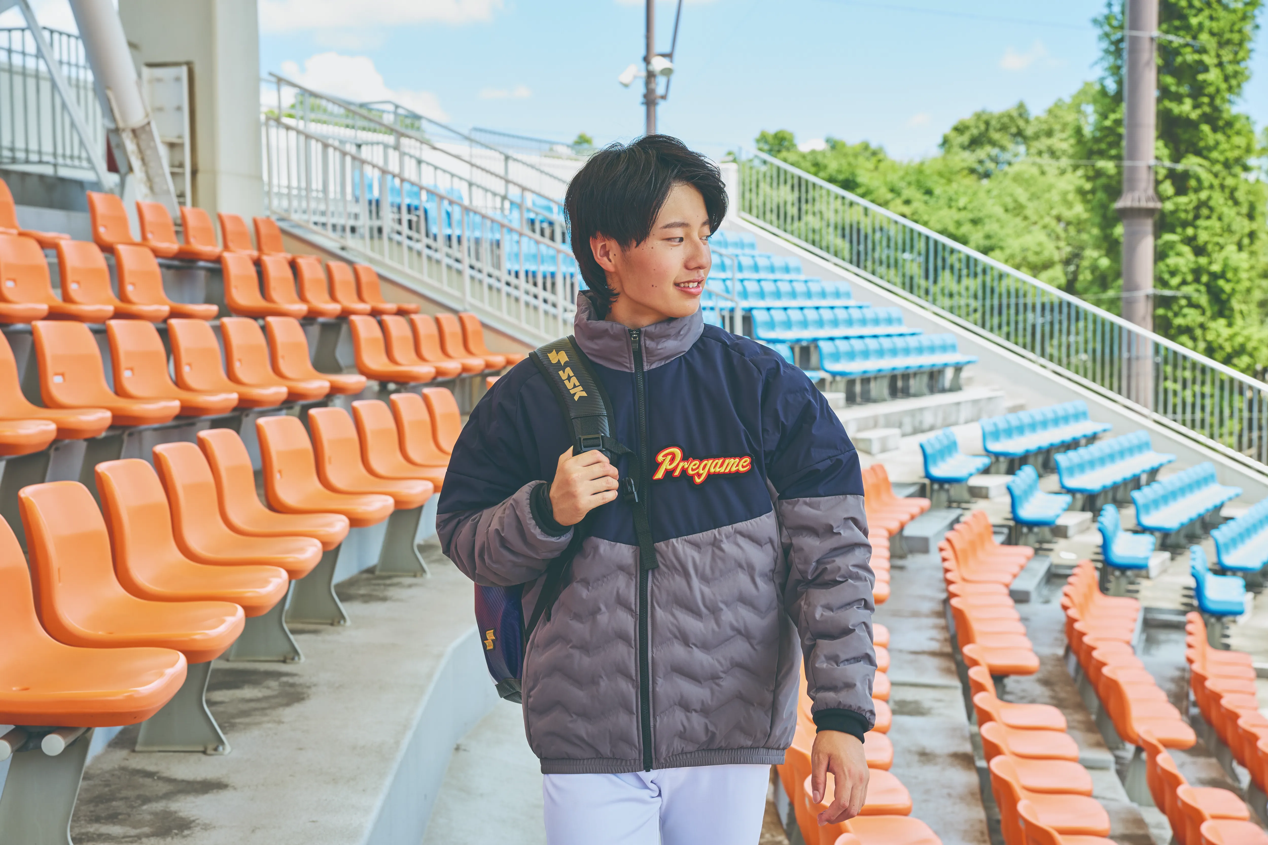 シームレス構造のダウンパックにより保温性がさらに向上し、寒い日の練習や試合前後でも体温をしっかりキープ。胸元と腕には再帰反射仕様を取り入れ、夜間や暗いグラウンドでも視認性を確保します。