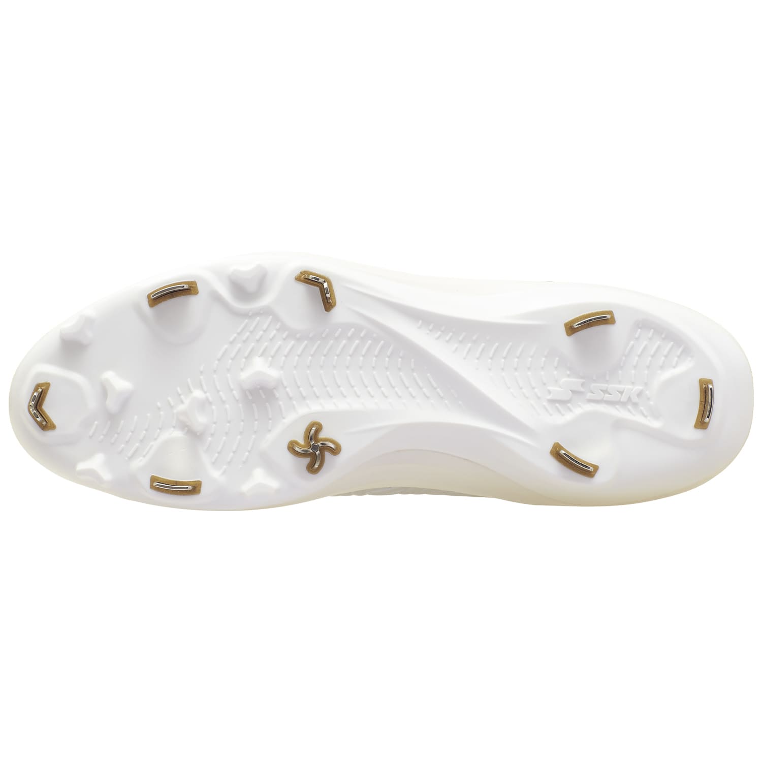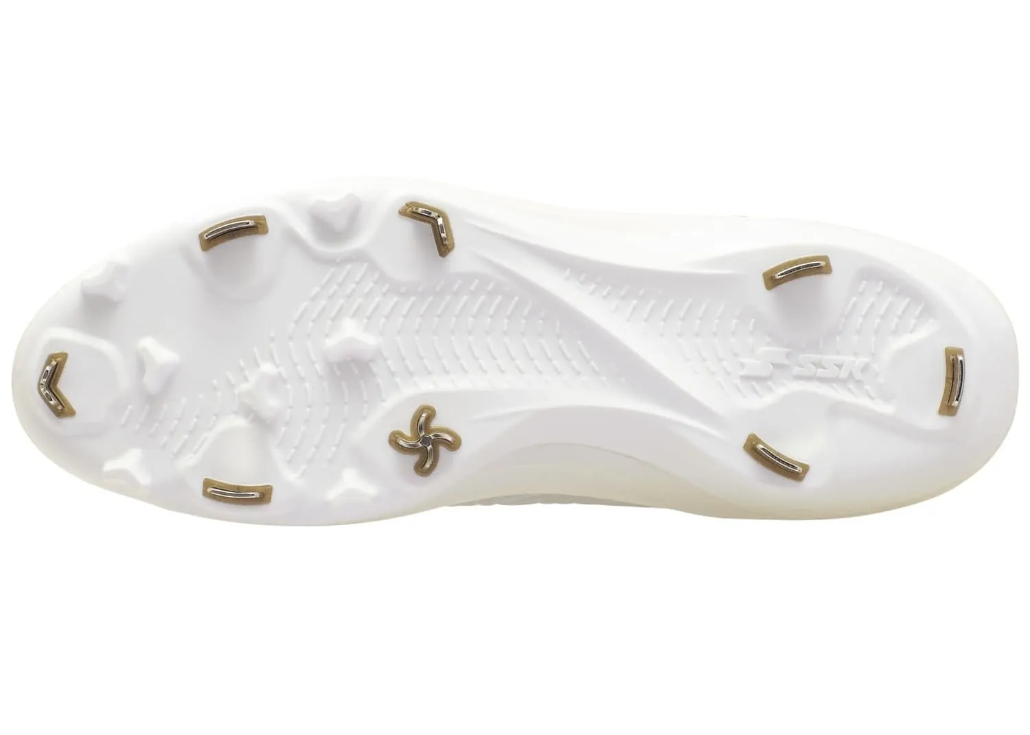 SSKの特許技術であるMIM製法(特開2014-050658)を採用し、従来のY字型による三方向グリップの金具形状を、四方向に対応するスクリュー形状へアップデート。踏み込み時に最も力がかかる母指球部分にスクリュー金具を配置することで、走・攻・守のあらゆるシーンにおいて、多方向への優れたグリップ力を発揮します。