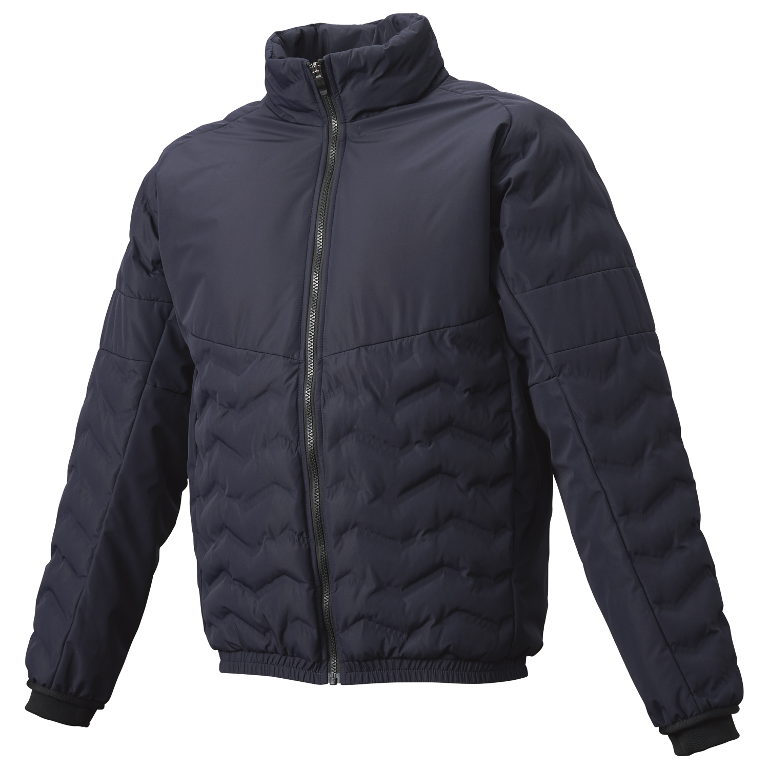グラウンドコートとして活躍する防寒性に優れた一枚です。シームレス構造のダウンパックで保温性を高め、寒い日の練習や試合前後でも体温をしっかりキープ。胸元と腕には再帰反射仕様を採用し、夜間や暗いグラウンドでの視認性も確保しています。※マーク代は含まれておりません。機能性と安全性を兼ね備え、野球選手のあらゆるシーンで頼れるジャケットです。