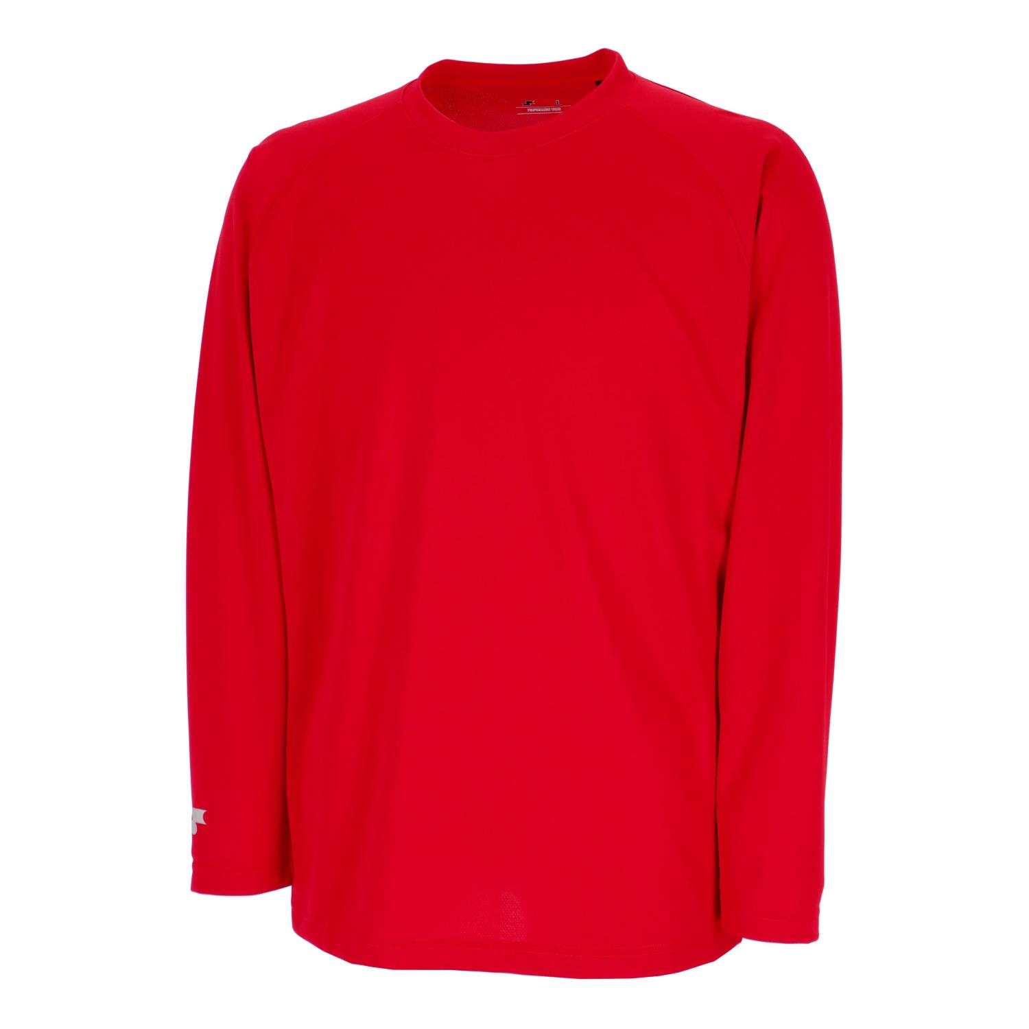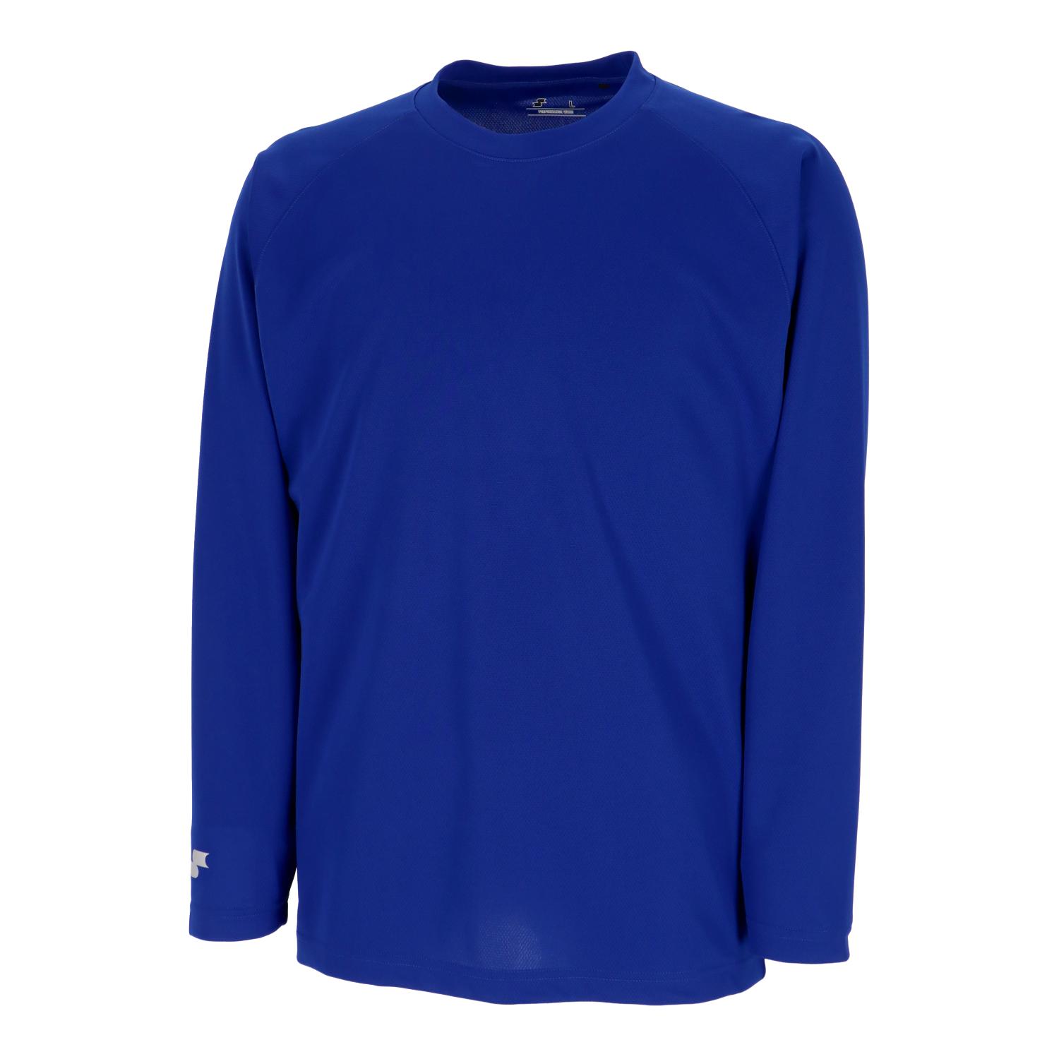 首元が丸く仕上げられたシンプルなデザインの長袖Tシャツです。柔らかく伸縮性のある素材で動きやすく、練習や試合、日常のカジュアルシーンでも快適に着用可能。ベーシックで着回ししやすく、機能性と実用性を兼ね備えた長袖Tシャツです。